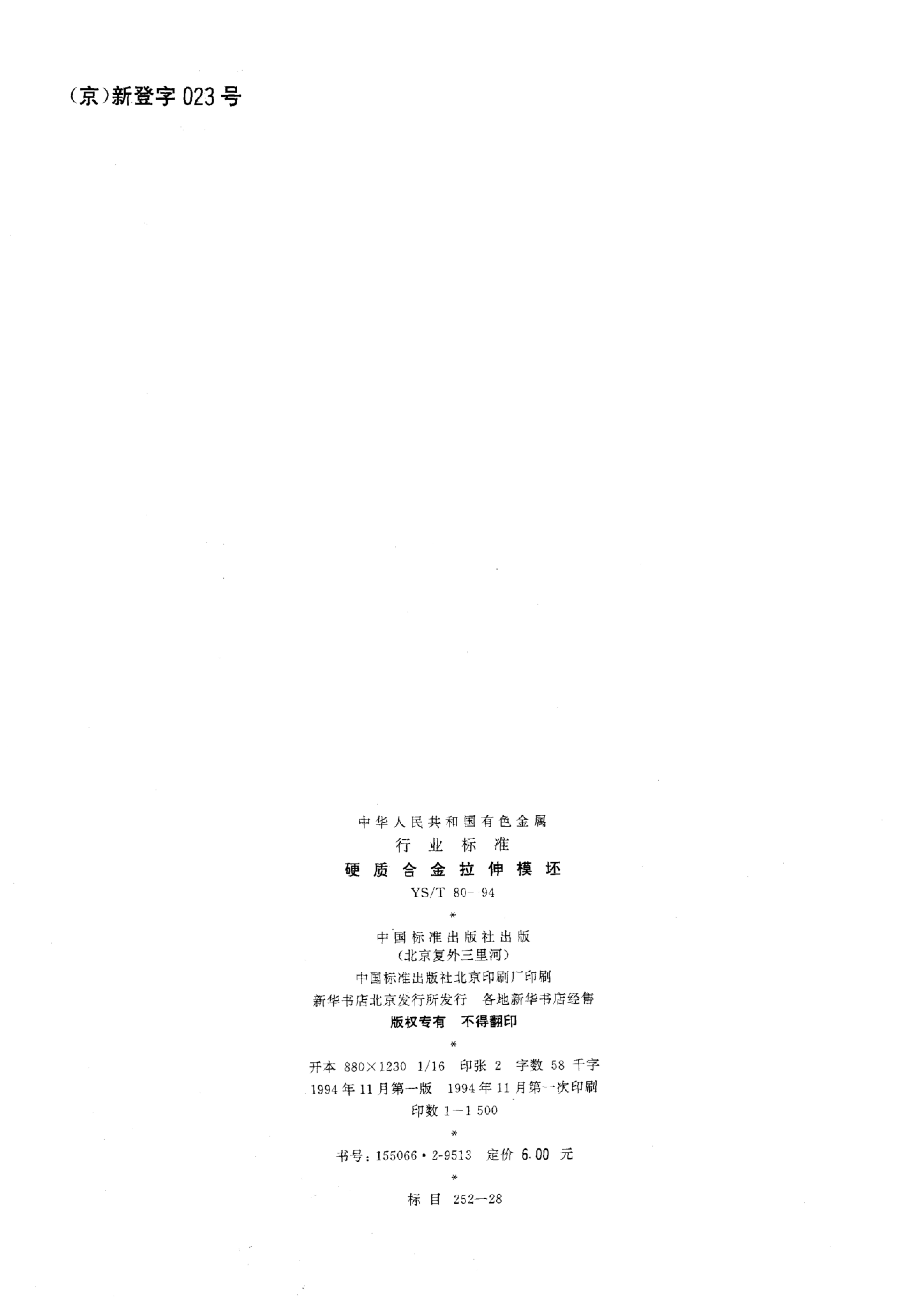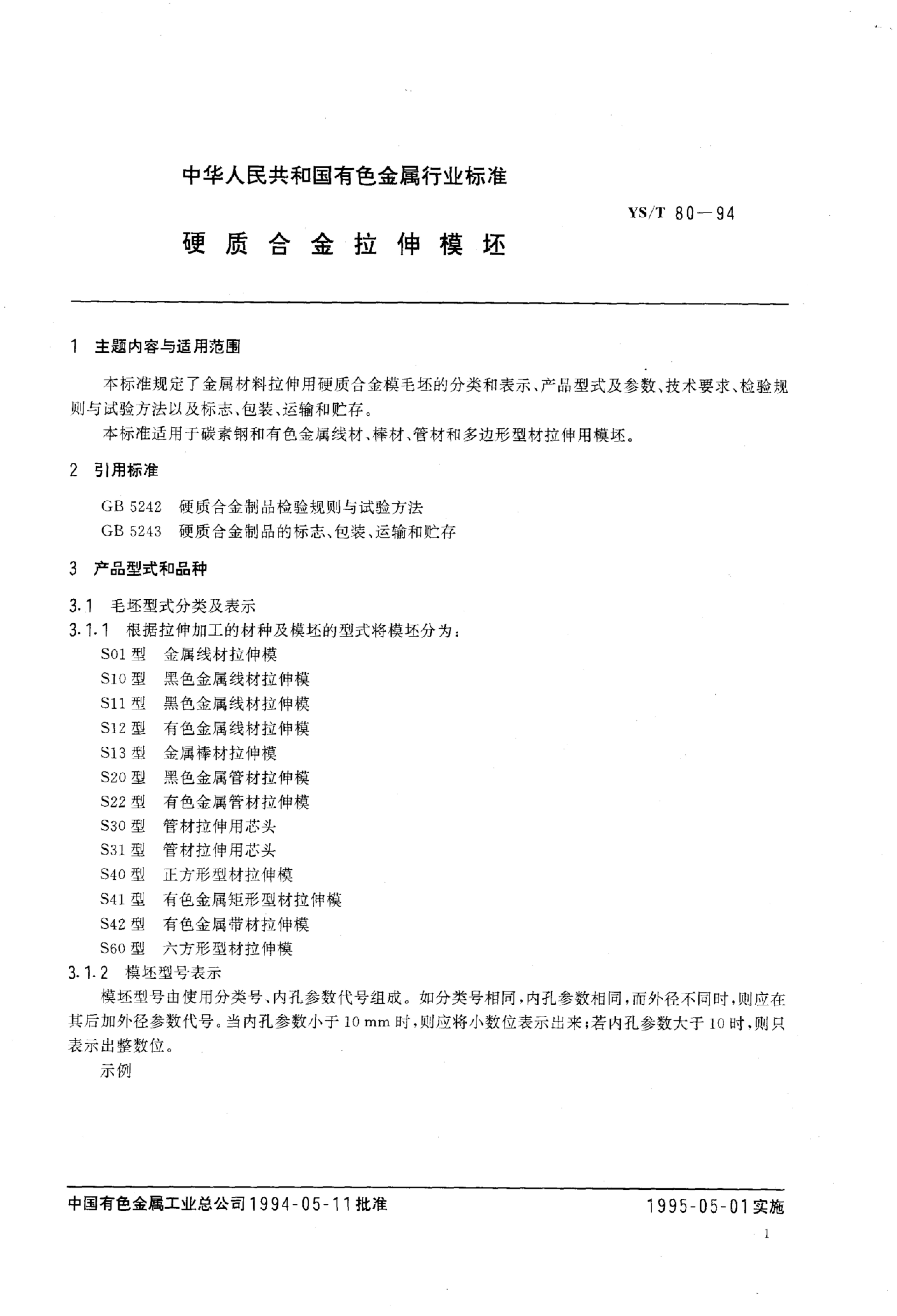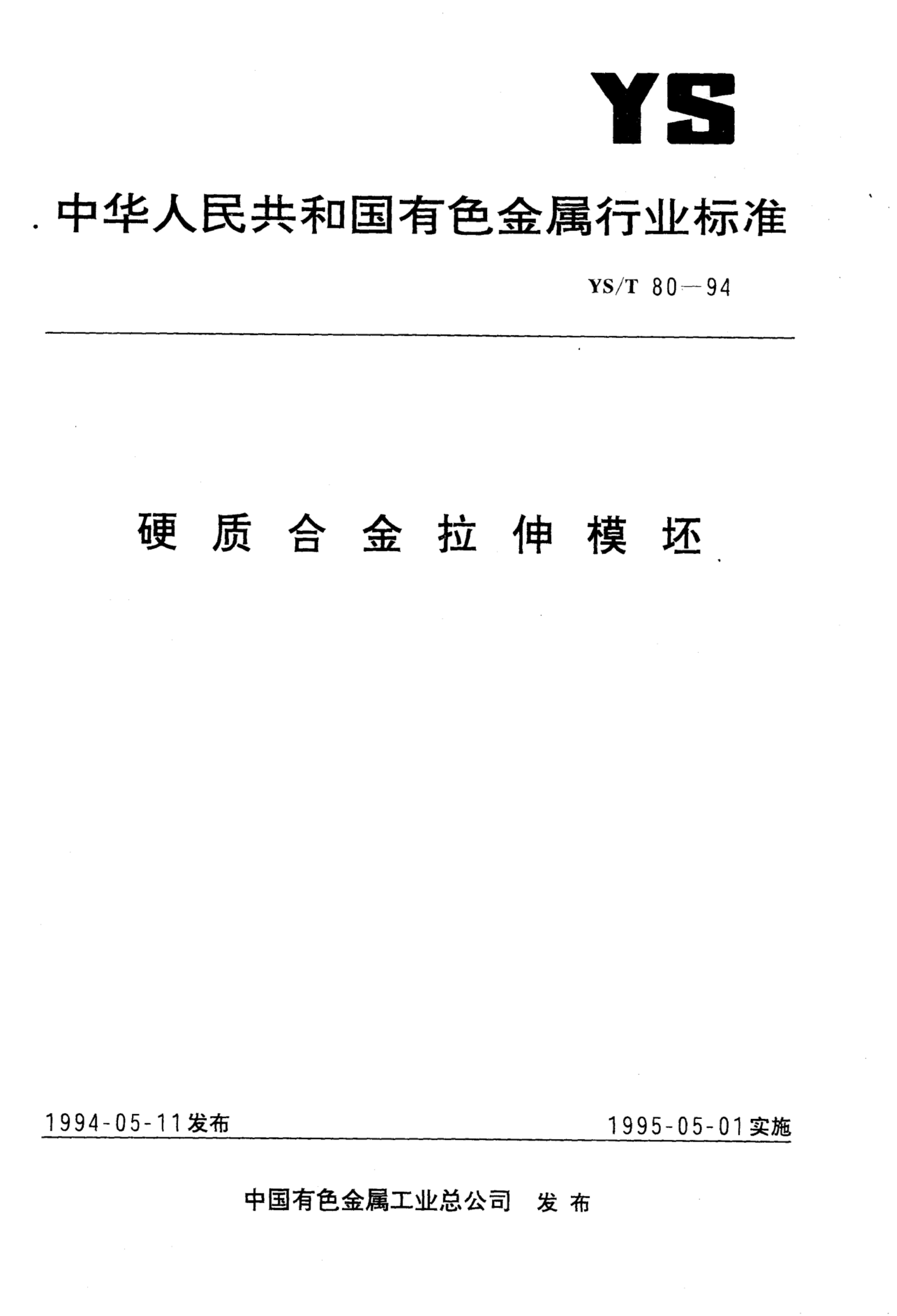 YS/T 80-1994 硬质合金拉伸模坯