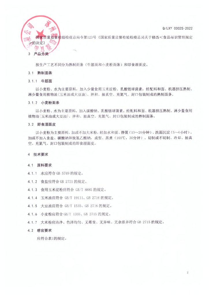 Q/LXY 0002S-2022 熟制面条及即食湿面皮