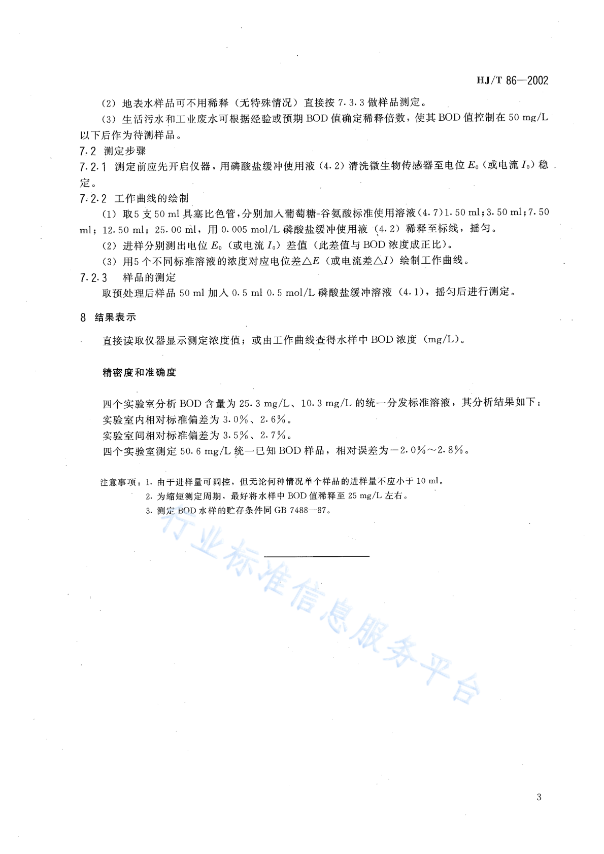 HJ/T 86-2002 水质 生化需氧量(BOD)的测定 微生物传感器快速测定法