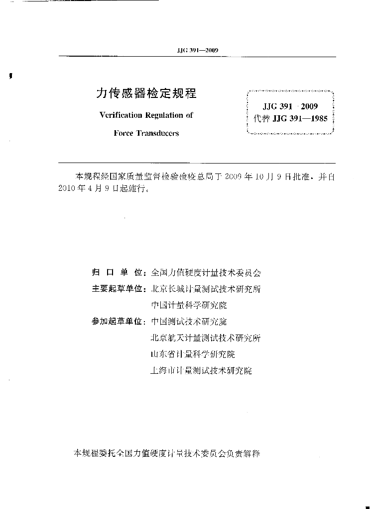 - 代替标准:JJG 391-1985