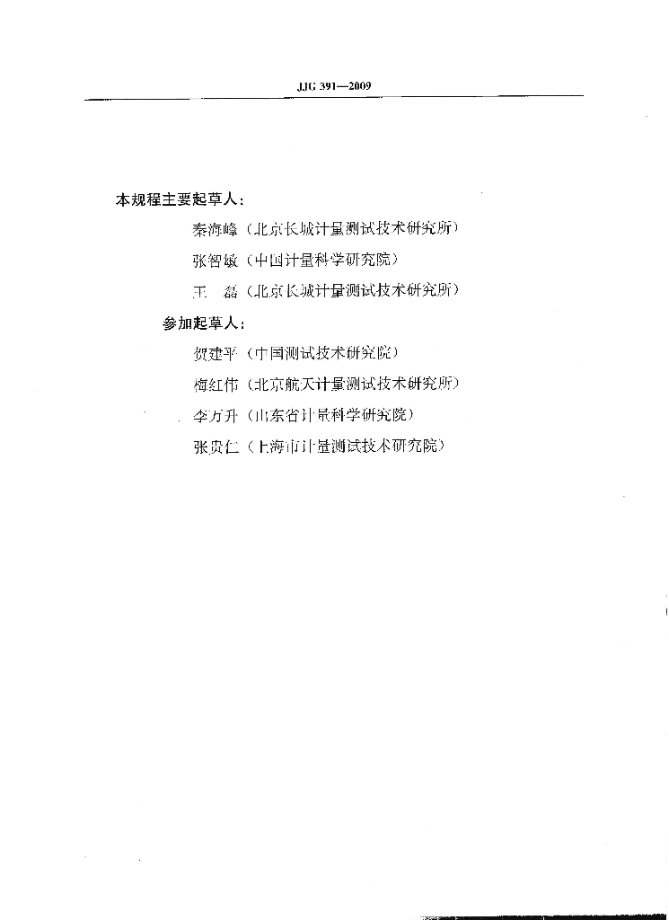 秦海峰(北京长城计量测试技术研究所)、张智敏(中国计量科学研究院)、王磊(北京长城计量测试技术研究所)、贺建平(中国测试技术研究院)、梅红伟(北京航天计量测试技术研究所)、李万升(山东省计量科学研究院)、张贵仁(上海市计量测试技术研究院)