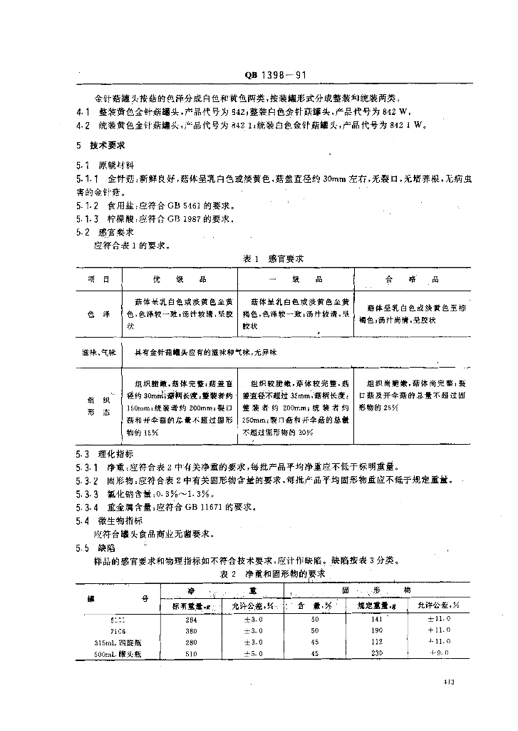 QB 1398-1991 金针菇罐头