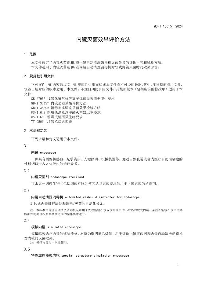 WS/T 10015-2024 内镜灭菌效果评价方法