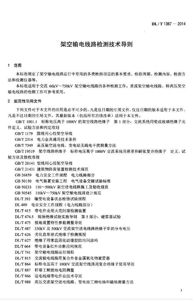DL/T 1367-2014 架空输电线路检测技术导则