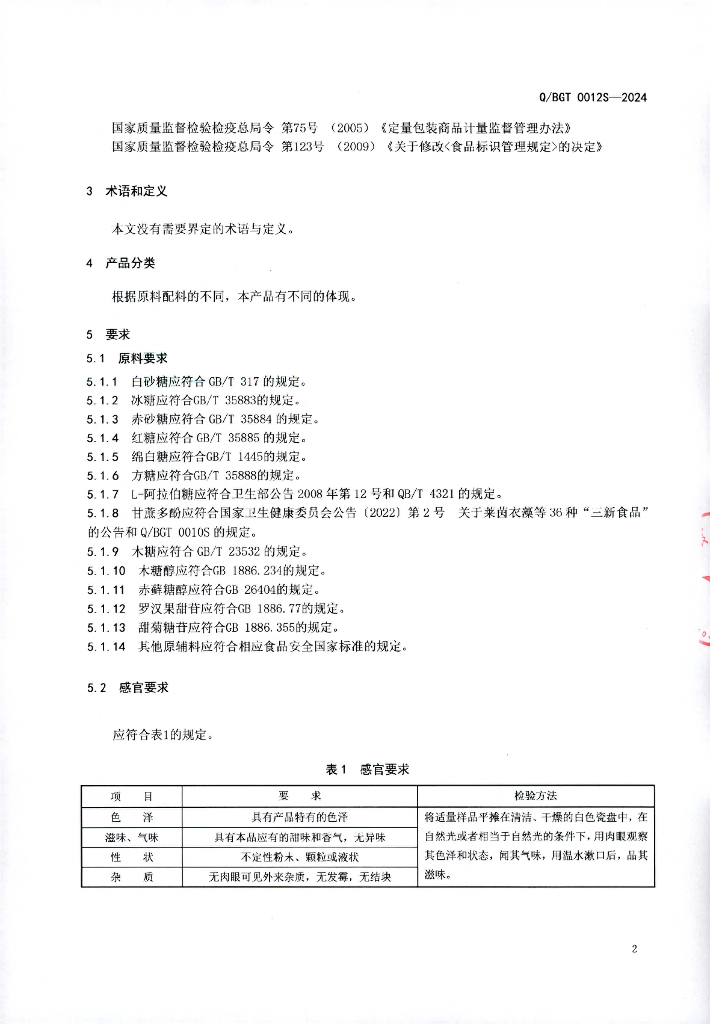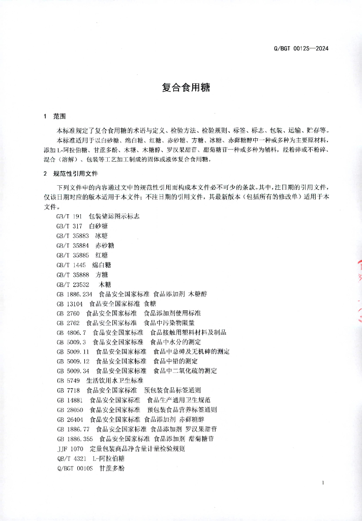 Q/BGT 0012S-2024 复合食用糖