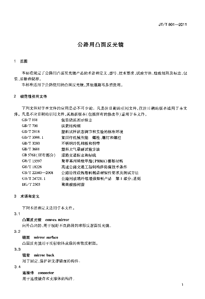 JT/T 801-2011 公路用凸面反光镜