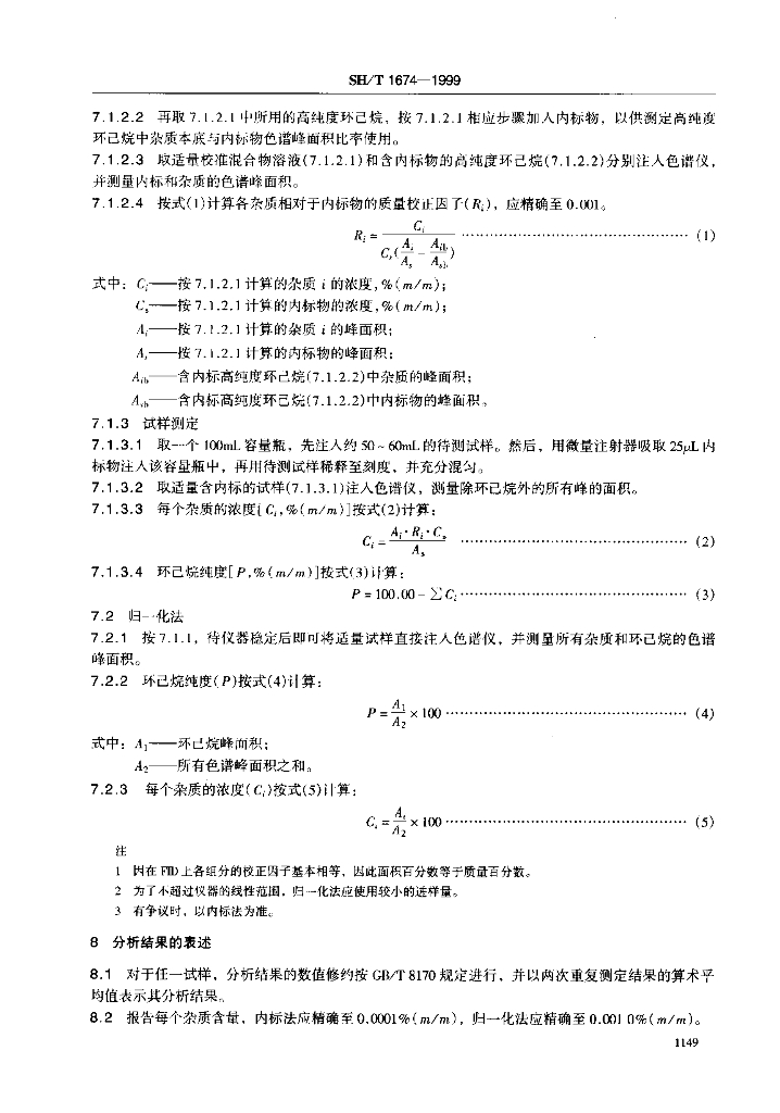 SH/T 1674-1999 工业用环己烷纯度及烃类杂质的测定 气相色谱法
