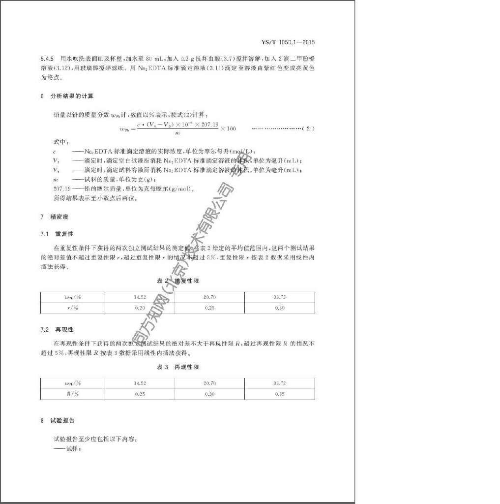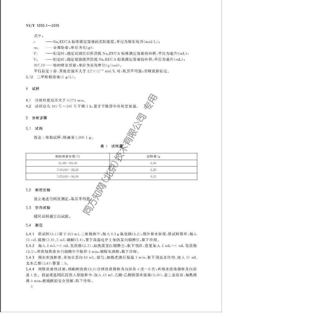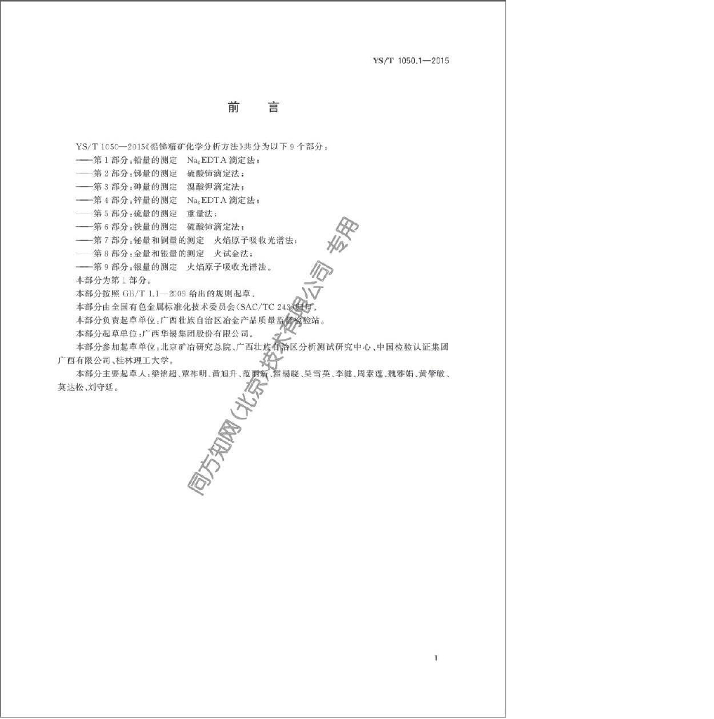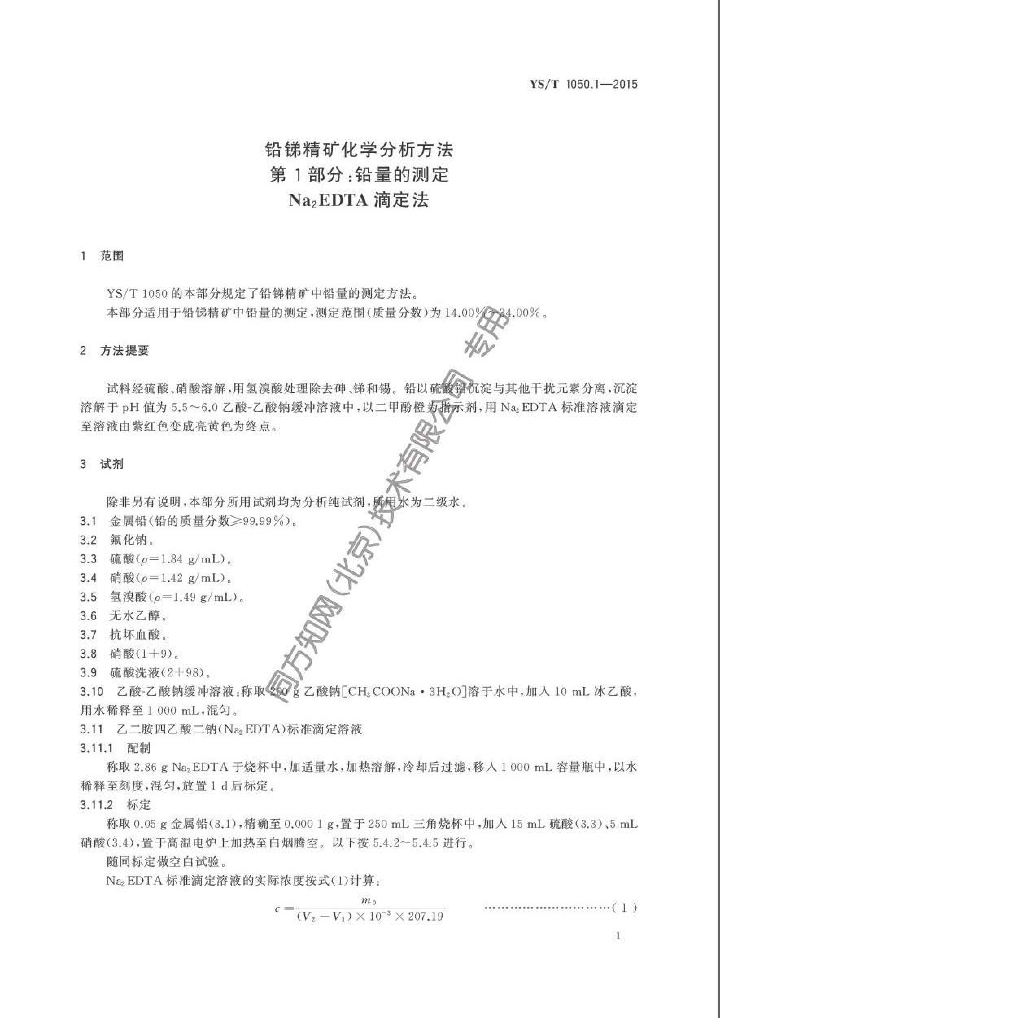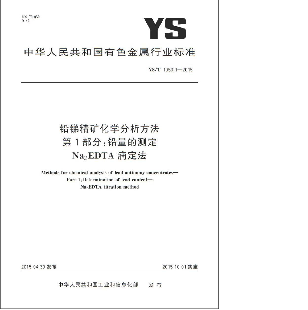 YS/T 1050.1-2015 铅锑精矿化学分析方法 第1部分:铅量的测定 Na2EDTA滴定法