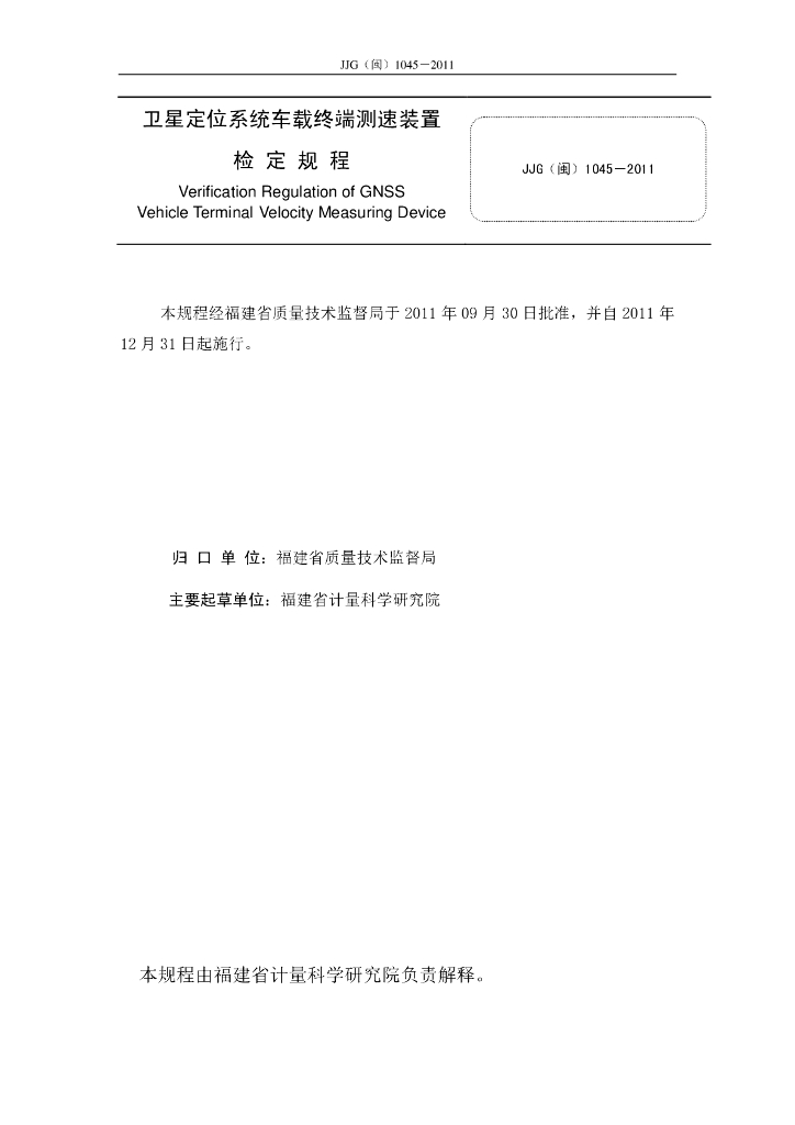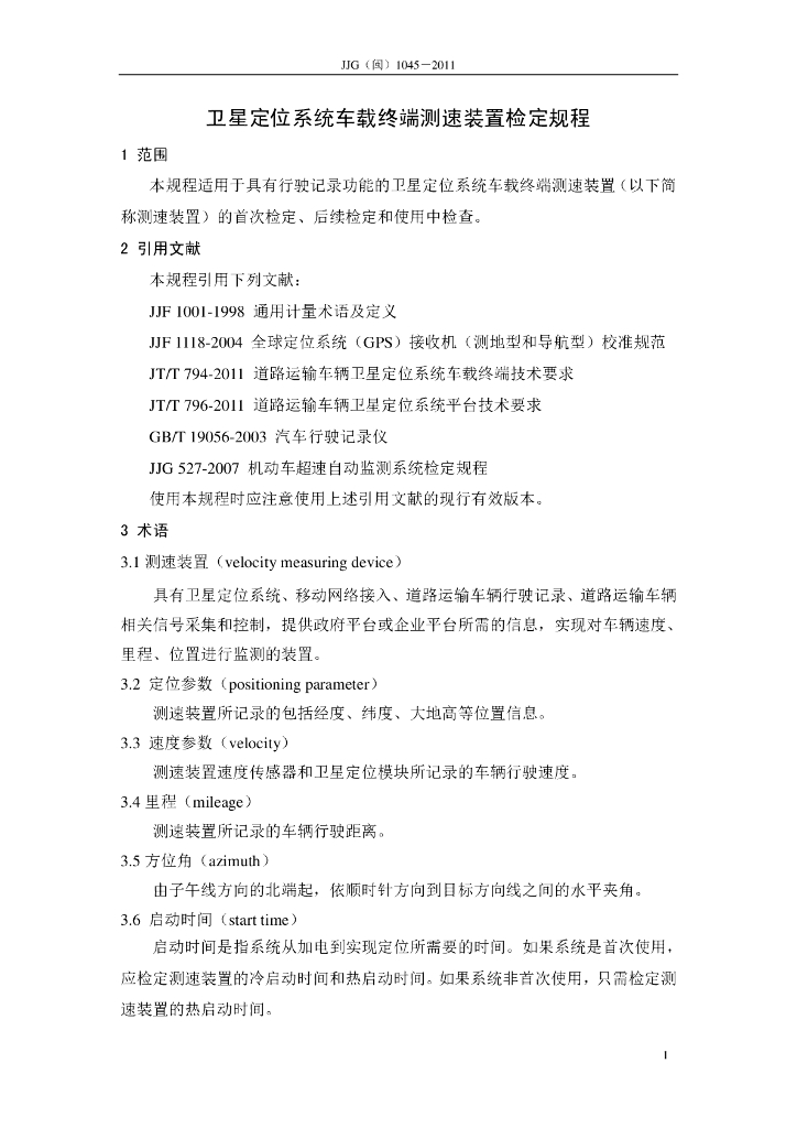 JJG(闽)1045-2011 卫星定位系统车载终端测速装置检定规程
