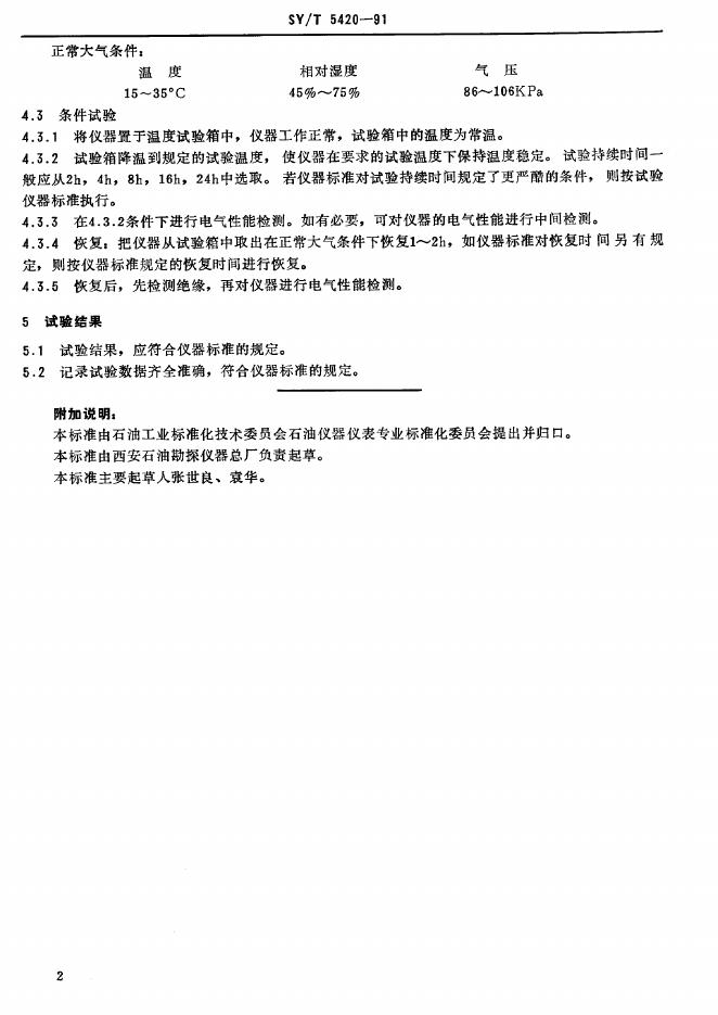 SY/T 5420-1991 石油勘探开发仪器基本环境试验 试验D:低温试验方法