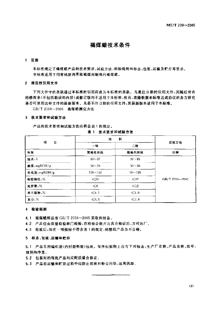 MT/T 239-2006 褐煤蜡技术条件