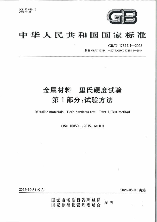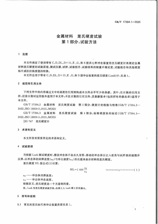 GB/T 17394.1-2025 金属材料 里氏硬度试验 第1部分:试验方法