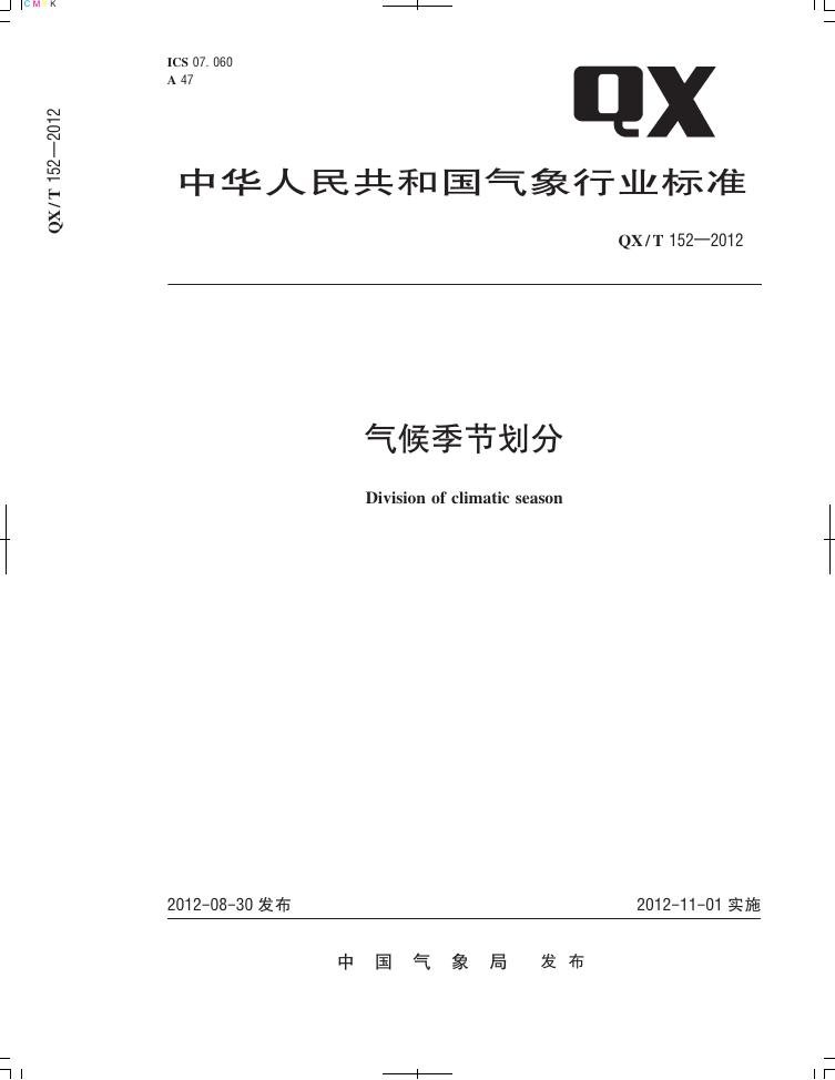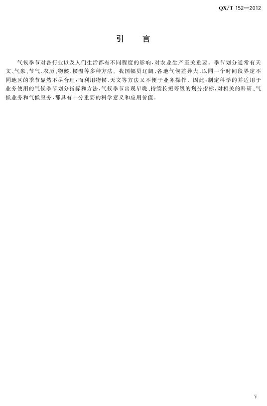 QX/T 152-2012 气候季节划分