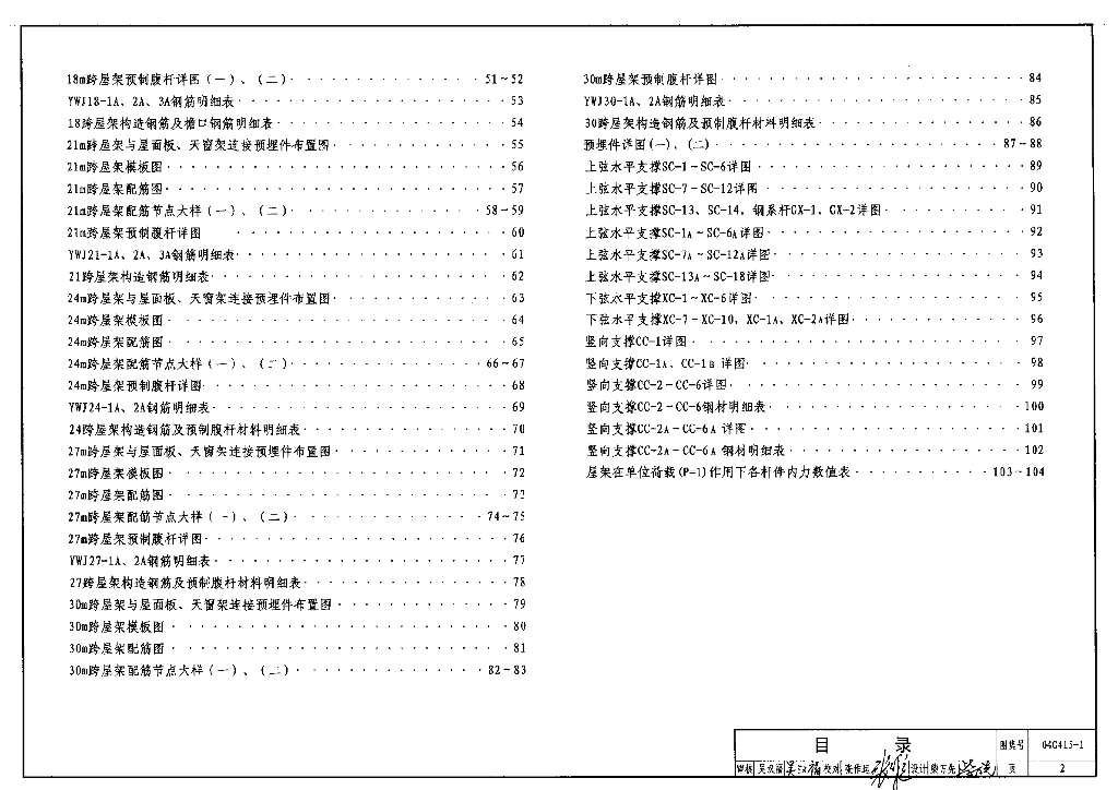 04G415-1 预应力混凝土折线形屋架(预应力钢筋为钢绞线跨度18m-30m)图集