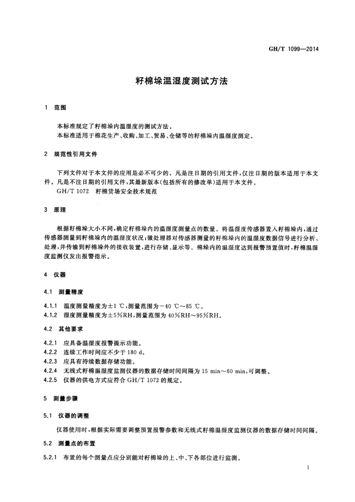 GH/T 1099-2014 籽棉垛温湿度测试方法