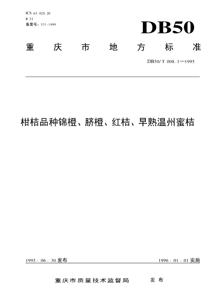 DB50/T 008.1-1995 柑桔品种锦橙、脐橙、红桔、早熟温州蜜桔