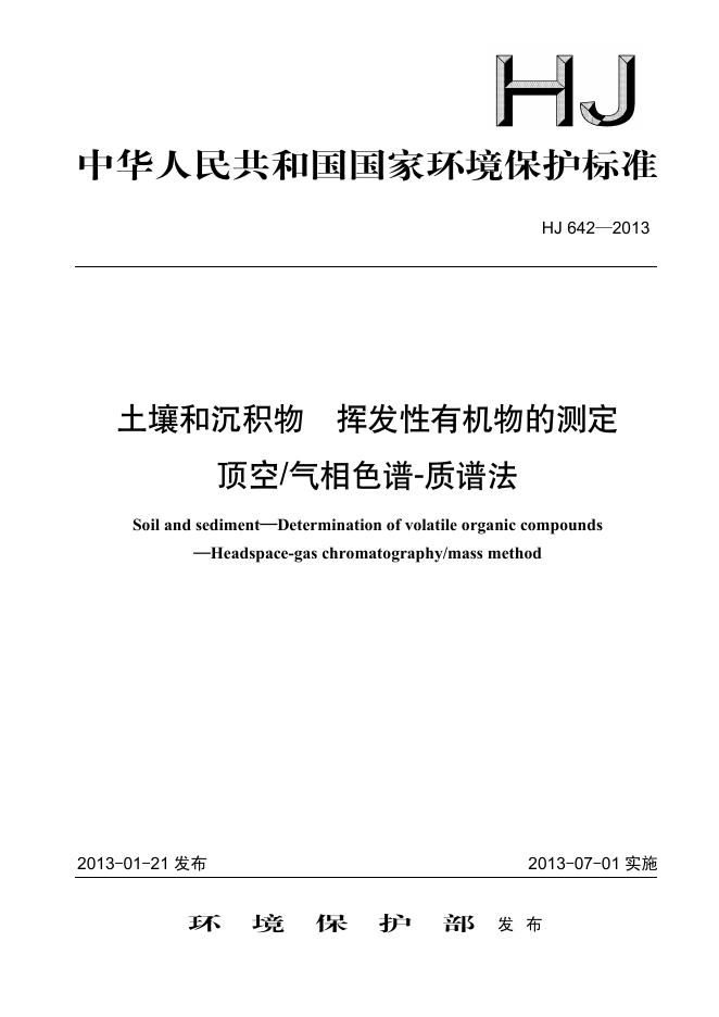 HJ 642-2013 土壤和沉积物 挥发性有机物的测定 顶空气相色谱—质谱法