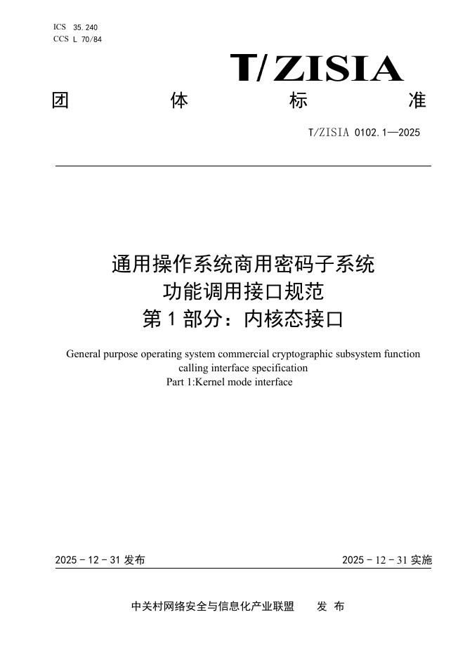 T/ZISIA 0102.1-2025 通用操作系统商用密码子系统 功能调用接口规范 第1部分:内核态接口
