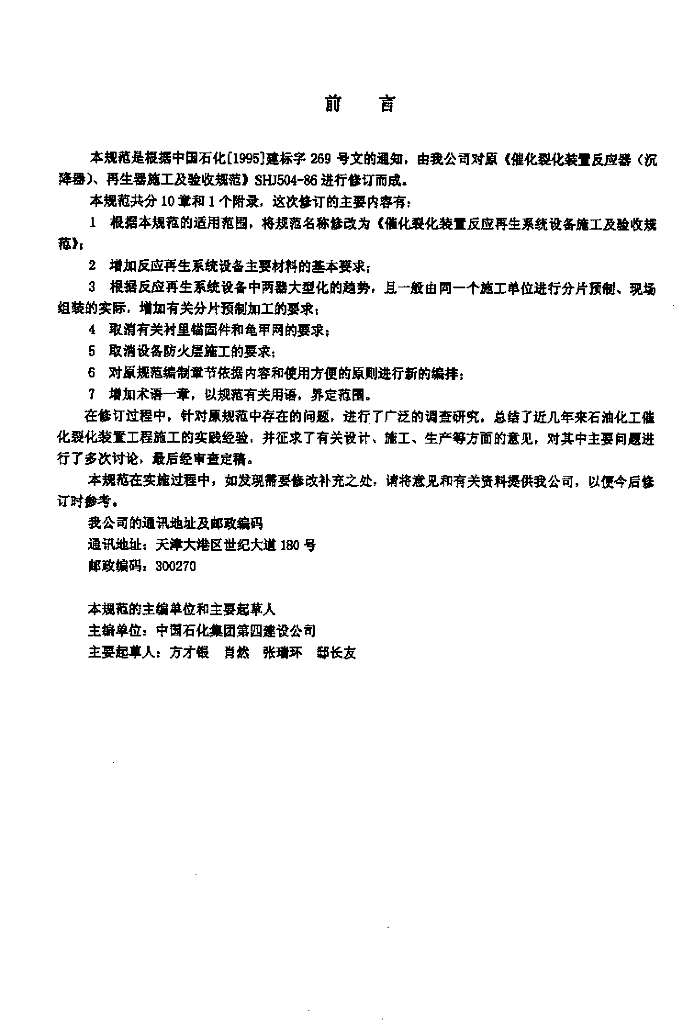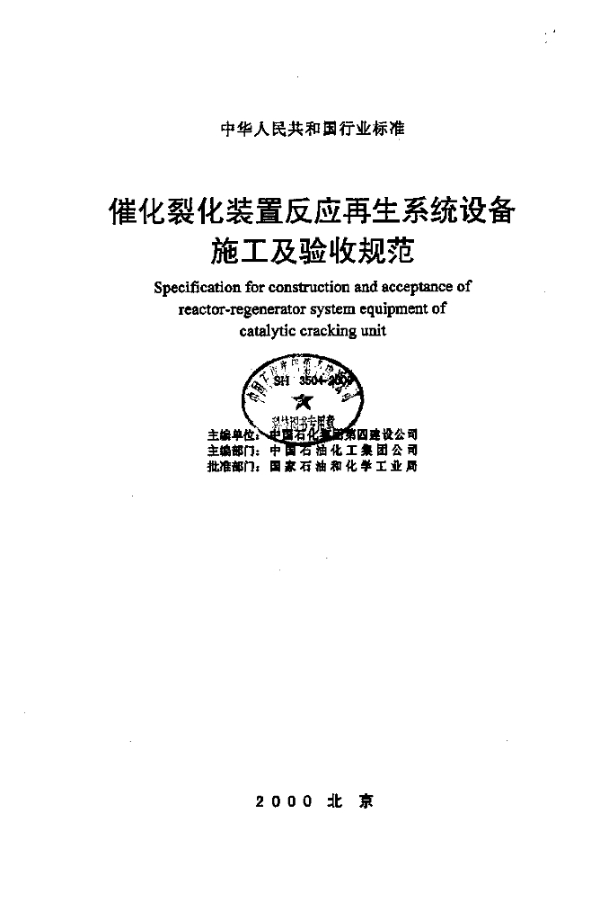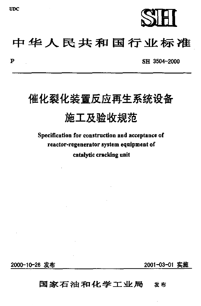 SH 3504-2000 催化裂化装置反应再生系统设备施工及验收规范