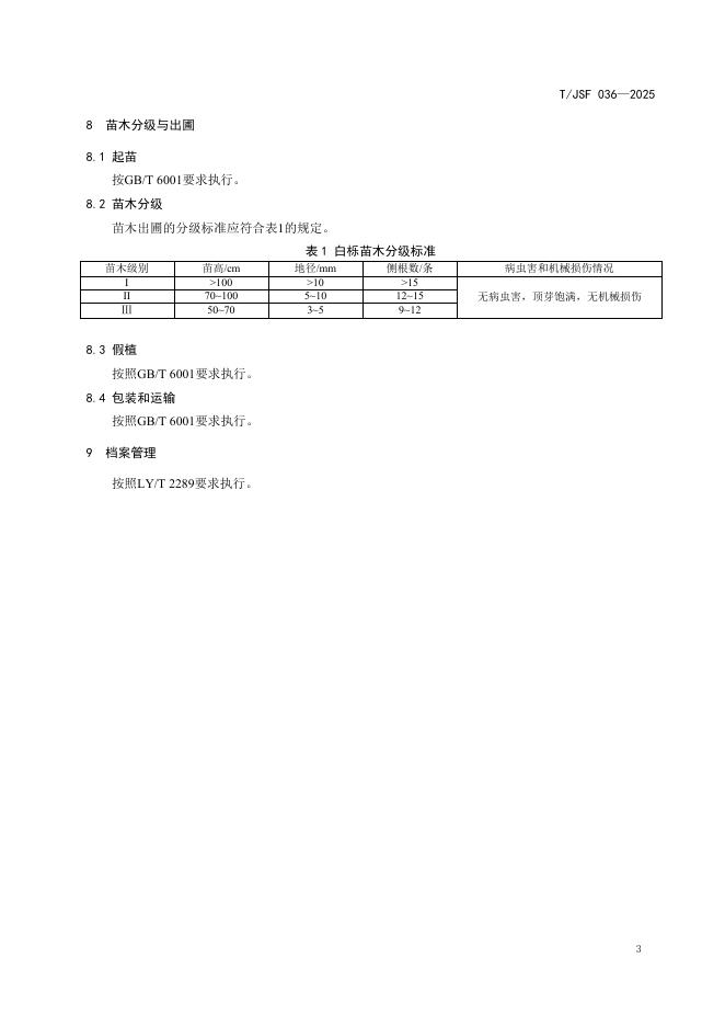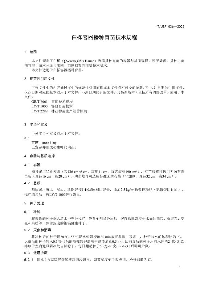 T/JSF 036-2025 白栎容器播种育苗技术规程