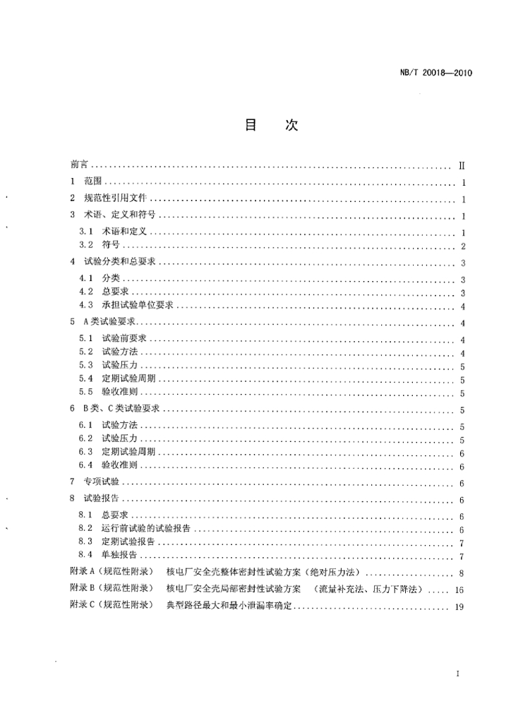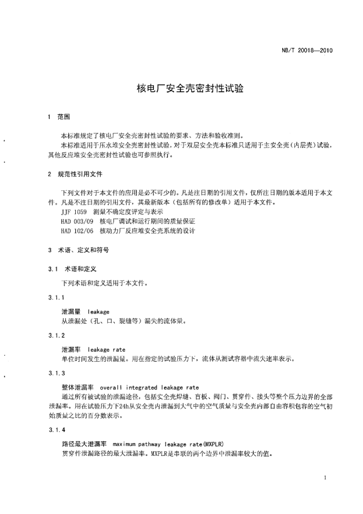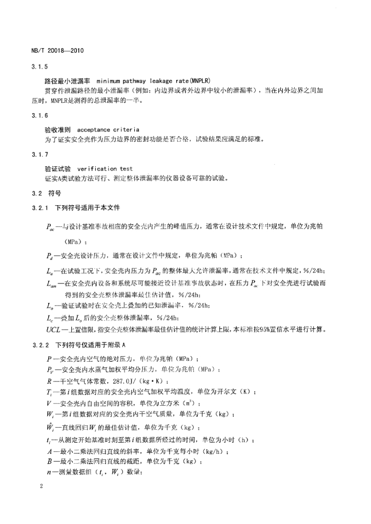 NB/T 20018-2010 核电厂安全壳密封性试验