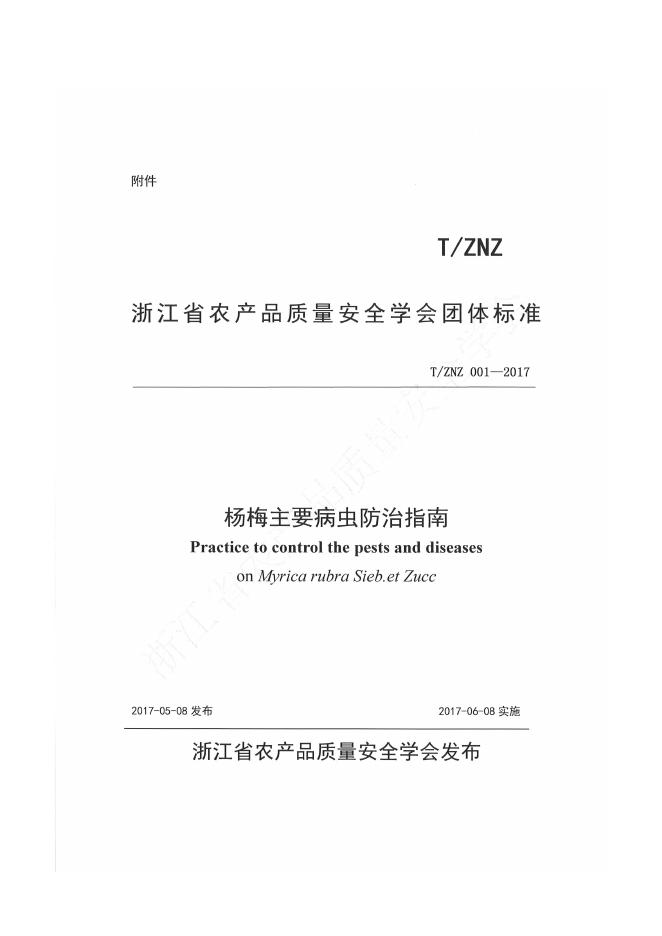 T/ZNZ 001-2017 杨梅主要病虫防治指南