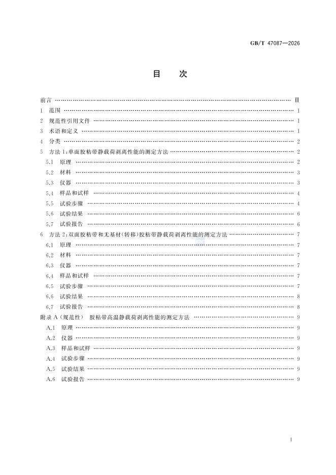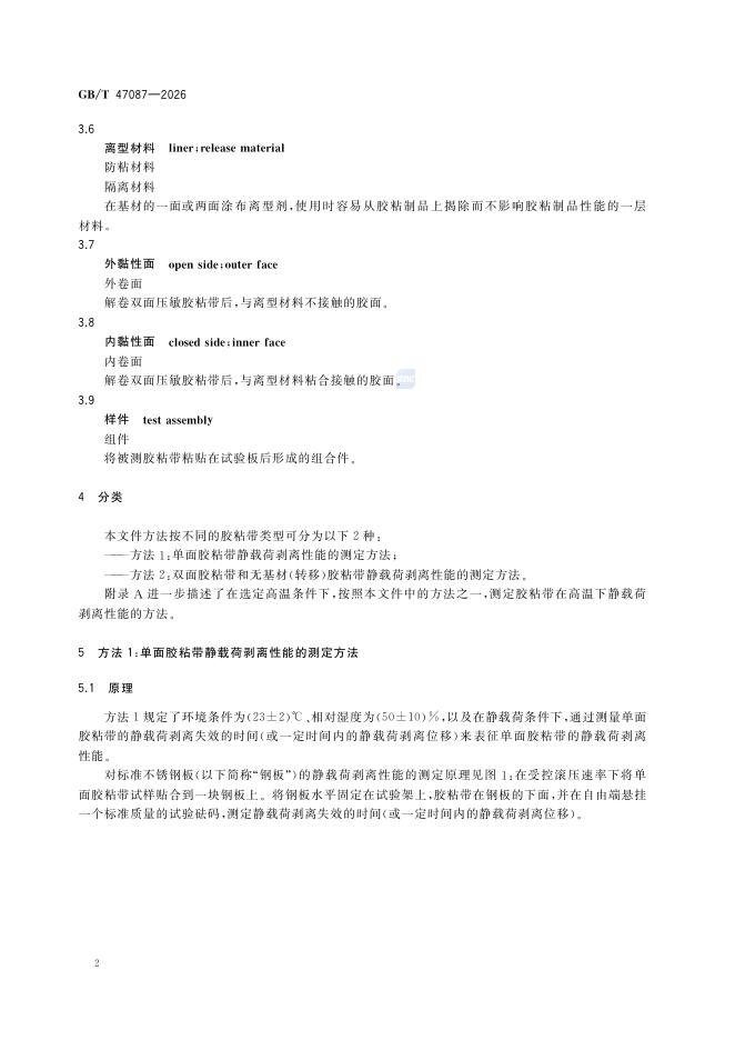 GB/T 47087-2026 胶粘带静载荷剥离性能的测定方法