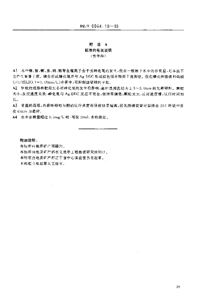 DZ/T 0064.10-1993 地下水质检验方法 二乙基二硫代氨基甲酸银分光光度法测定砷