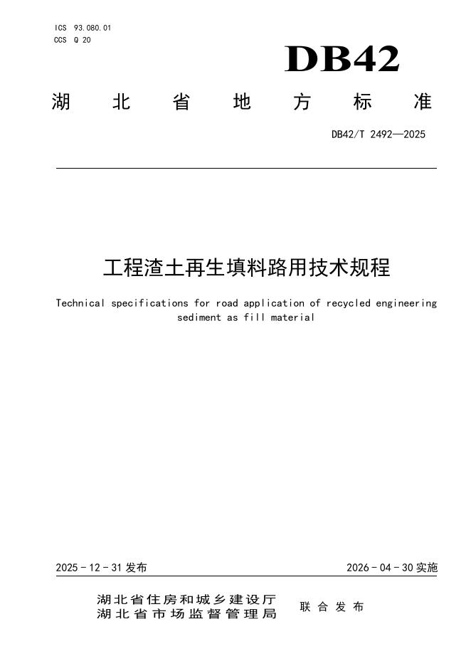 DB42/T 2492-2025 工程渣土再生填料路用技术规程