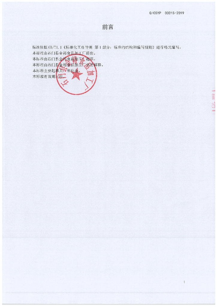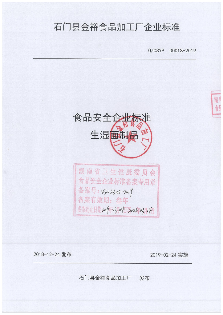 Q/CSYP 0001S-2019 生湿面制品