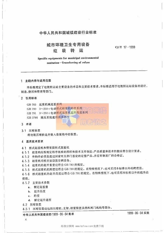 CJ/T 17-1999 城市环境卫生专用设备垃圾转运