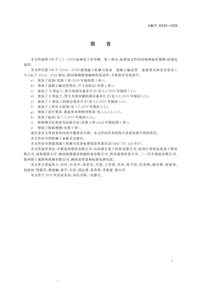GB/T 32543-2026 建筑施工机械与设备 混凝土输送管 连接型式和安全要求