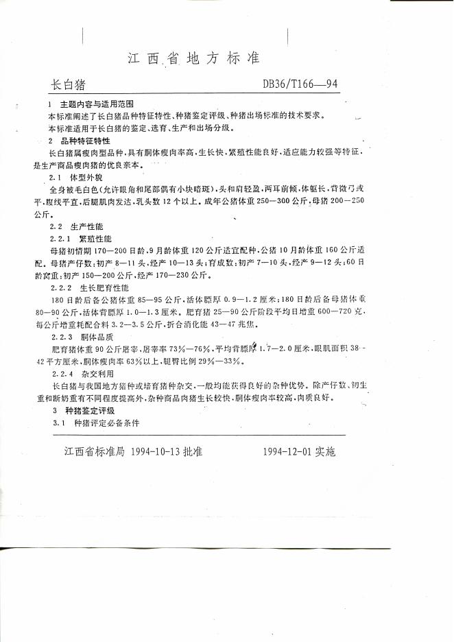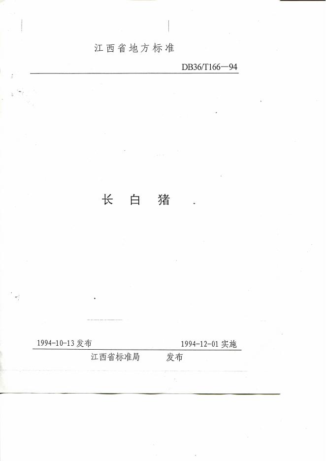 DB36/T 166-1994 长白猪