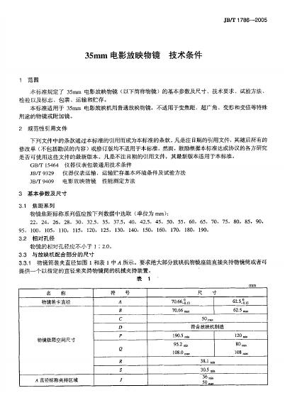 JB/T 1786-1991 35mm电影放映物镜技术条件