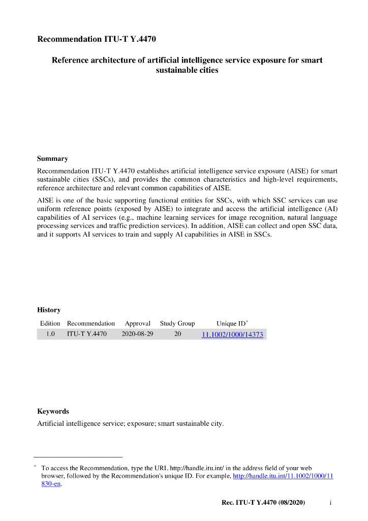 ITU-T Y.4470-2020 可持续智慧城市人工智能服务开放参考架构(英文版)