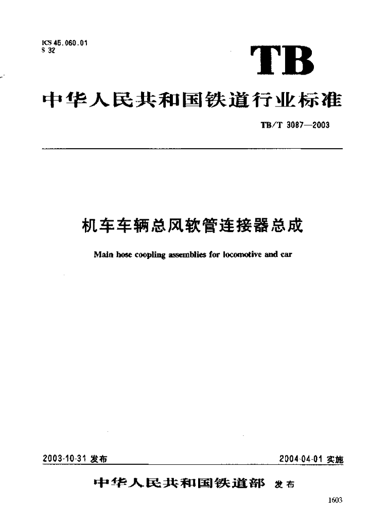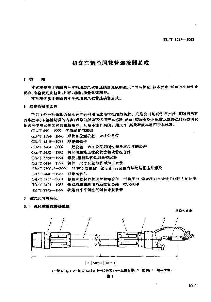 TB/T 3087-2003 机车车辆总风软管连接器总成