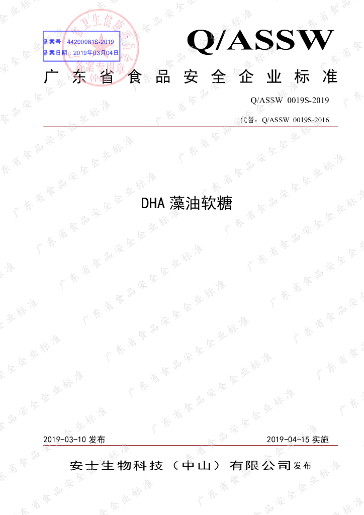 Q/ASSW 0019S-2019 DHA藻油软糖
