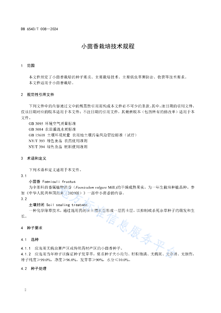 DB6543/T 008-2024 小茴香栽培技术规程