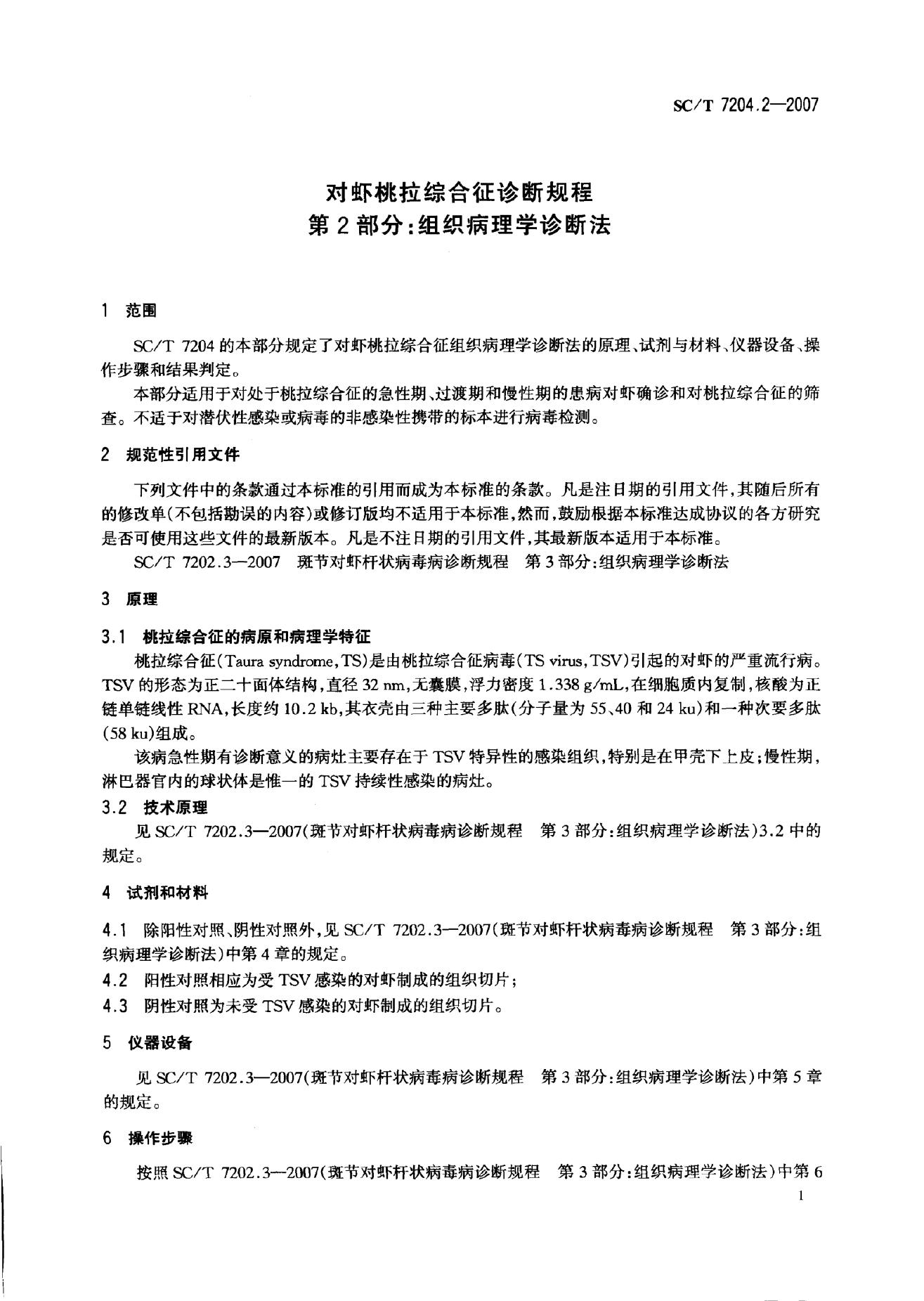 SC/T 7204.2-2007 对虾桃拉综合征诊断规程 第2部分:组织病理学诊断法