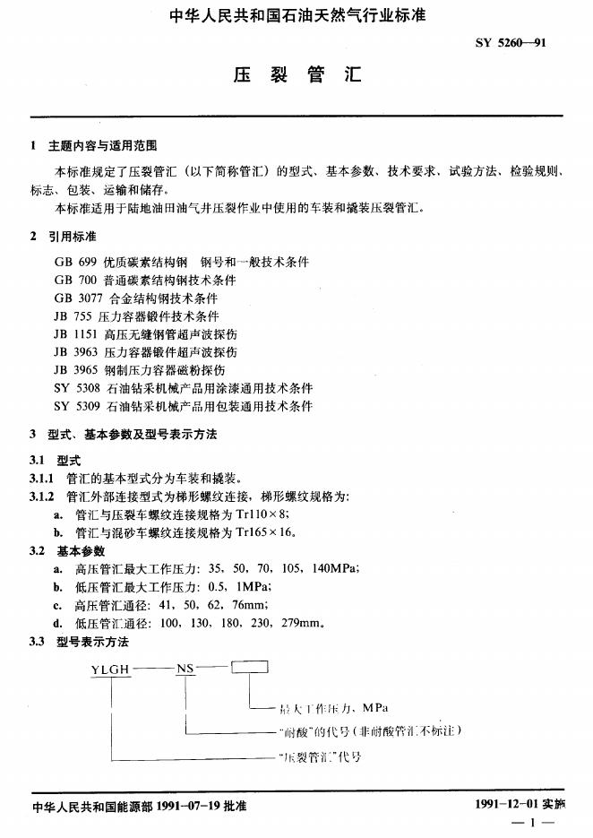 SY 5260-1991 压裂管汇