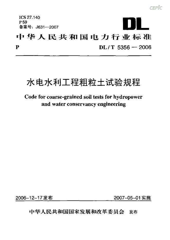 DL/T 5356-2006 水电水利工程粗粒土试验规程