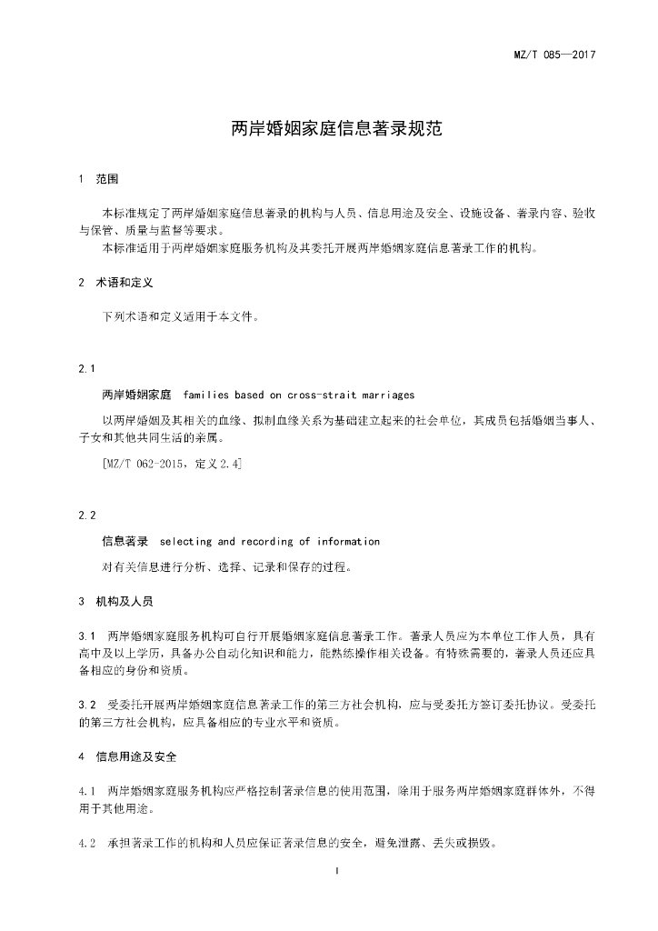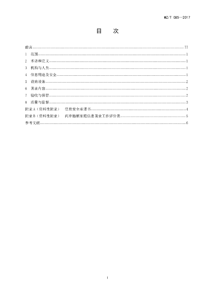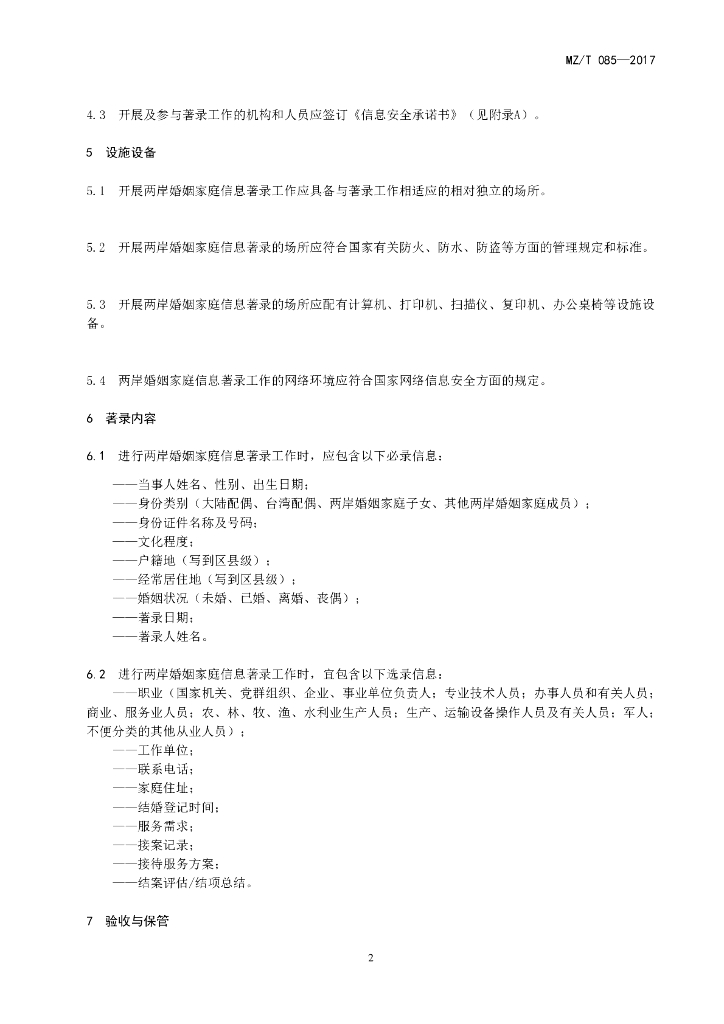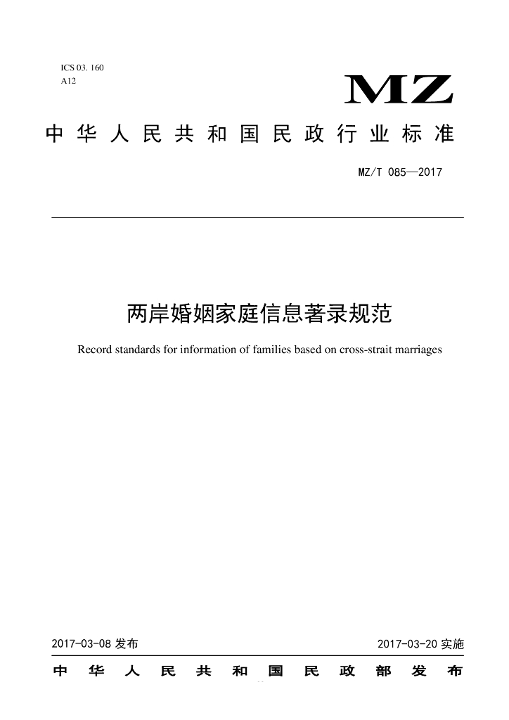 MZ/T 085-2017 两岸婚姻家庭信息著录规范