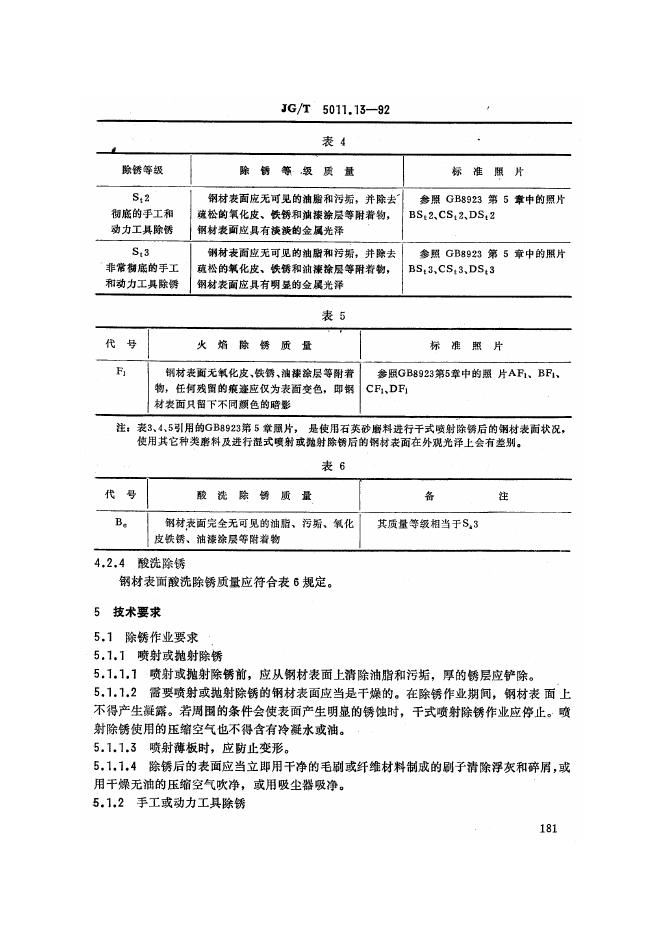JG/T 5011.13-1992 建筑机械与设备除锈通用技术条件