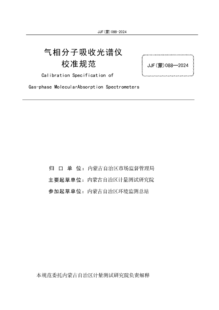 JJF(蒙)088-2024 气相分子吸收光谱仪校准规范