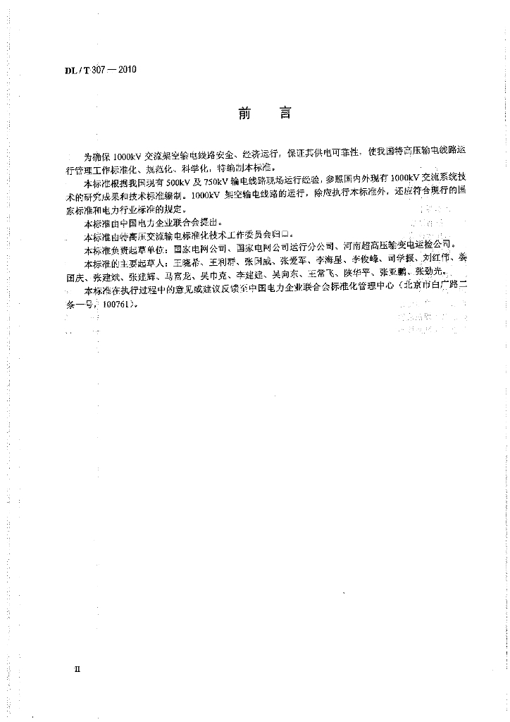 DL/T 307-2010 1000kV交流架空输电线路运行规程