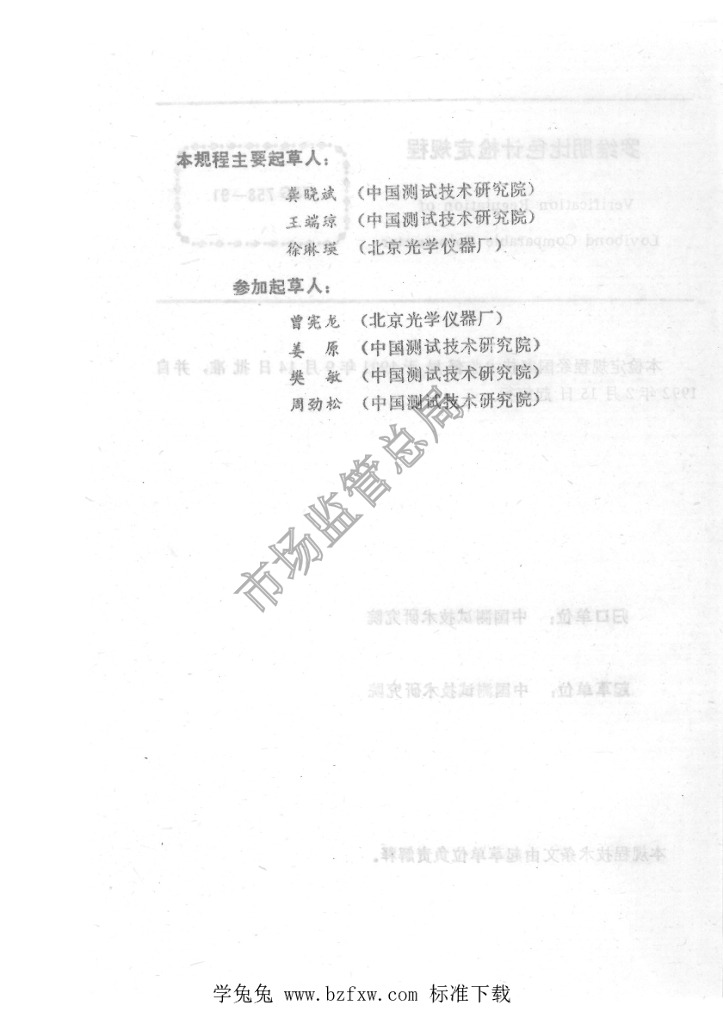 龚晓斌(中国测试技术研究院)、王端琼(中国测试技术研究院)、徐琳瑛(北京光学仪器厂)、曾宪龙(北京光学仪器厂)、姜原(中国测试技术研究院)、樊敏(中国测试技术研究院)、周劲松(中国测试技术研究院)