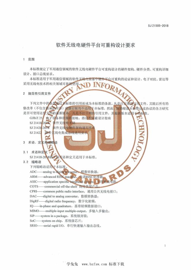 SJ 21505-2018 软件无线电硬件平台可重构设计要求