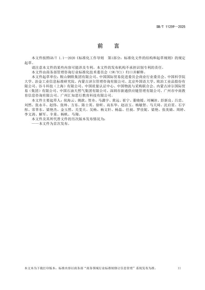 鞍山钢铁集团有限公司、中国国际贸易促进委员会商业行业委员会、中国科学院大学、冶金工业信息标准研究院、内蒙古淖尔管理咨询有限公司、北京外国语大学、欧冶工业品股份有限公司、谷斗科技(上海)有限公司、中国质量认证中心、中国物流与采购联合会、内蒙古淖尔国际贸易(集团)有限公司、中国石油天然气集团有限公司、深圳市新通供应链管理有限公司、广州市中商教育信息咨询有限公司、广州汇知思行教育科技有限公司。