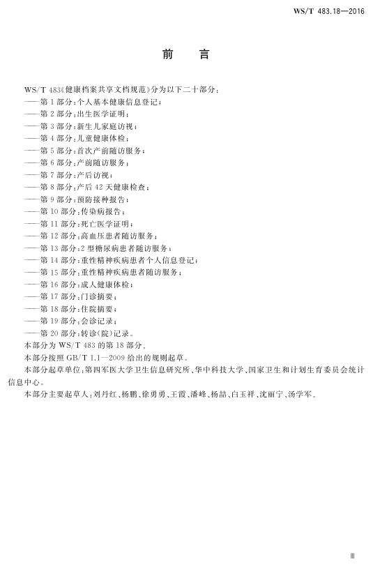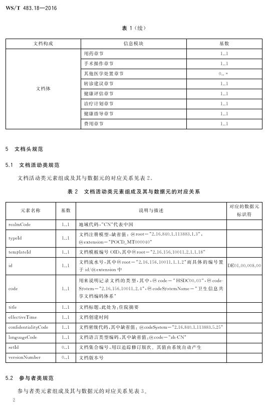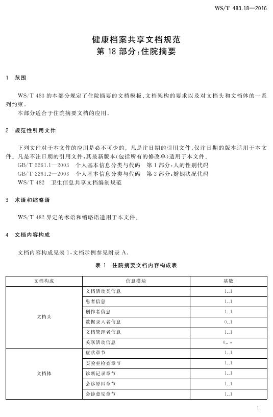 WS/T 483.18-2016 健康档案共享文档规范 第18部分:住院摘要