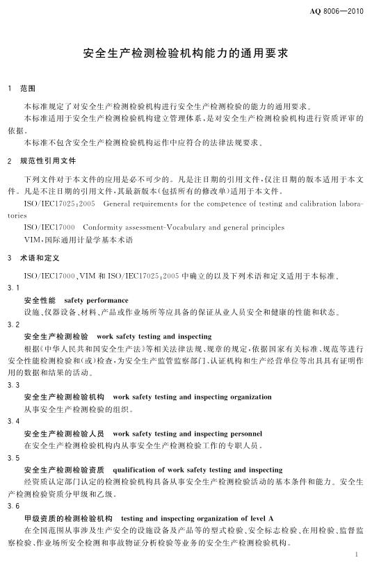 AQ/T 8006-2018 安全生产检测检验机构能力的通用要求